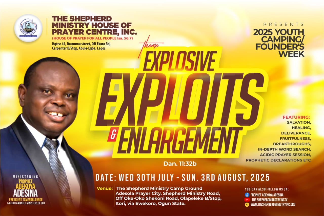 I really appreciate the God of our fathers for saving me from an untimely death. It was by the grace of God that I am alive today to witness this year's Founder's week and youth camp program. I want to appreciate my Father in the Lord-Prophet Adekoya Adesina and all the ministers of God for their rapid response to my situation. During our anniversary, I had a very terrible near death experience but with the prayers of all the ministers of God, I was resuscitated by God. I thank God for healing me totally. Praise the Lord.
